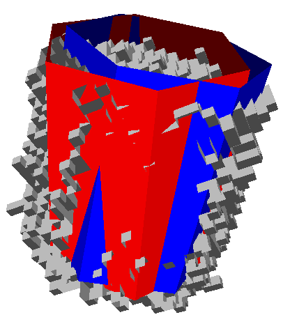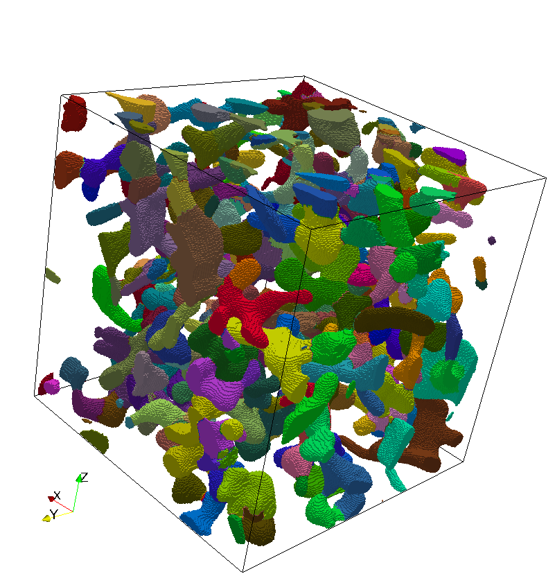 Image tomgraphique \(\rightarrow\) segmentation en grains par des critères géométriques \(\rightarrow\) pour chaque grain, orientation cristalline