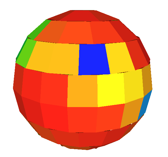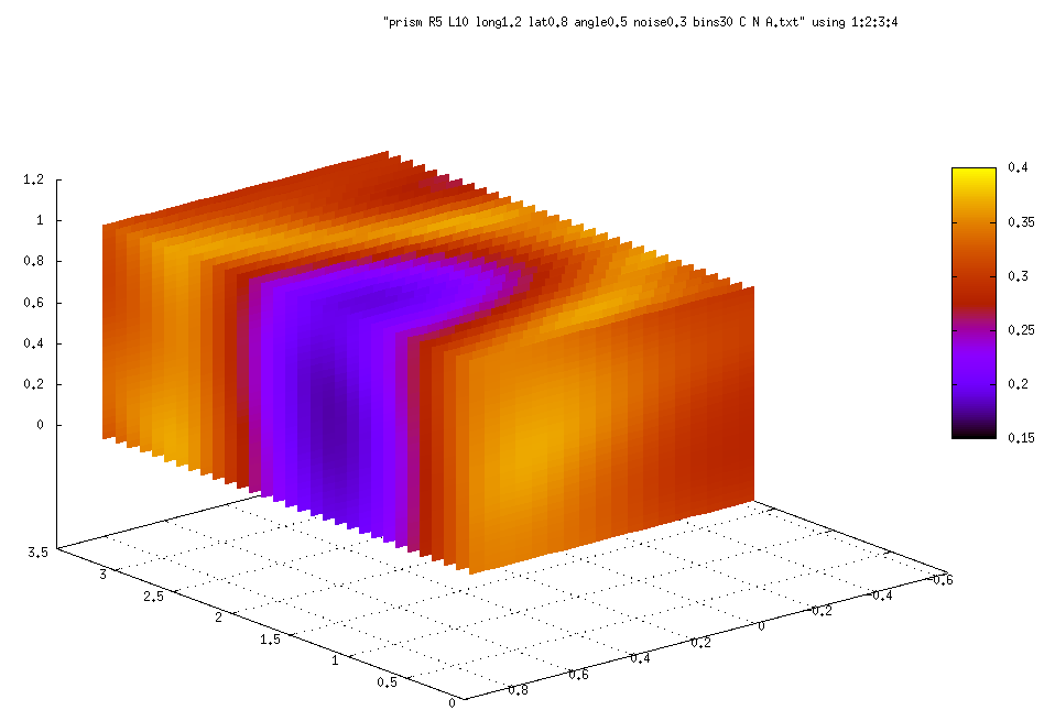 Espace de recherche pour les angles \(\rho\) = phase, \(\phi, \theta\) = latitude, longitude de l'axe du prisme